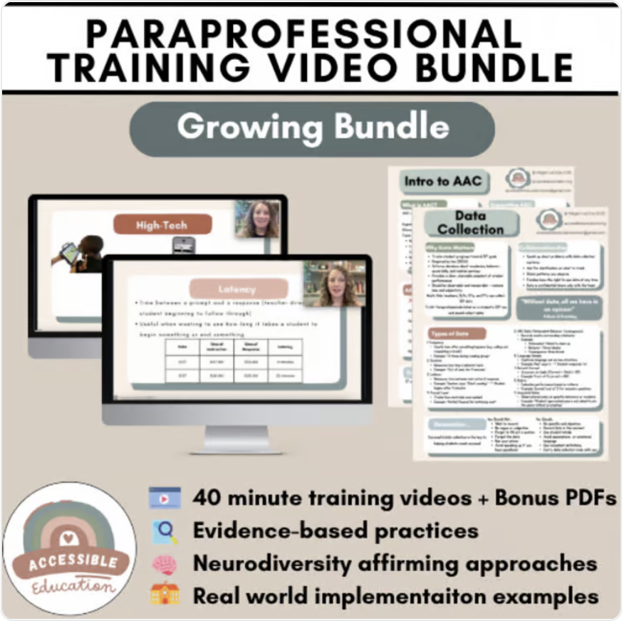 In my Teachers Pay Teachers store you can find many different resources for running a self-contained classroom or supporting students with high support needs in inclusion. Most resources are aligned for elementary school classrooms. There are also many different paraprofessional training and management resources. Here are some of the most popular!